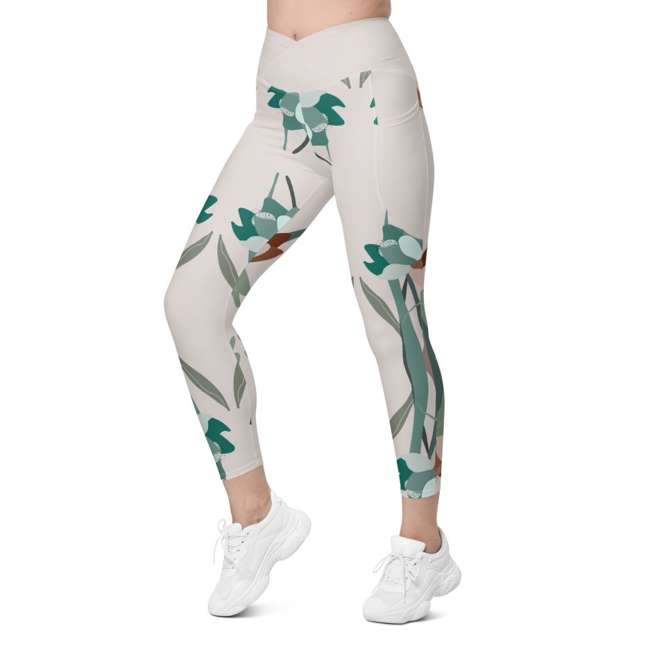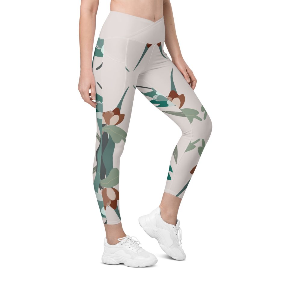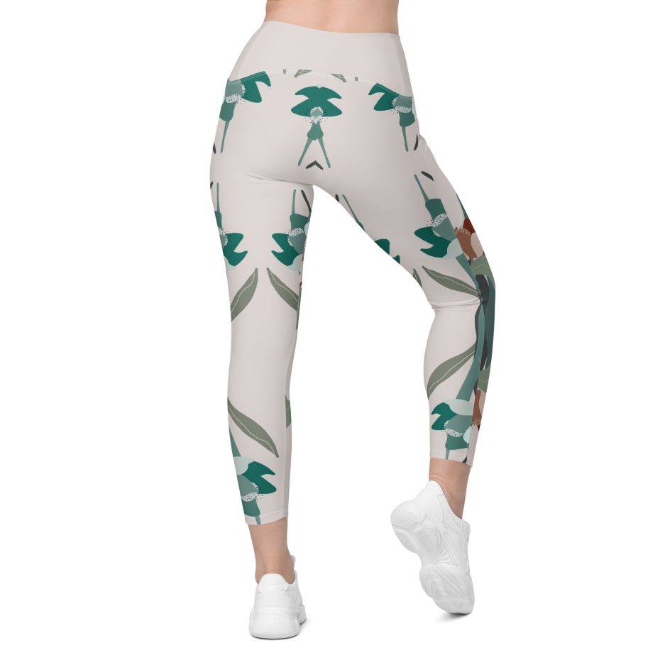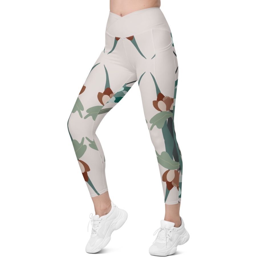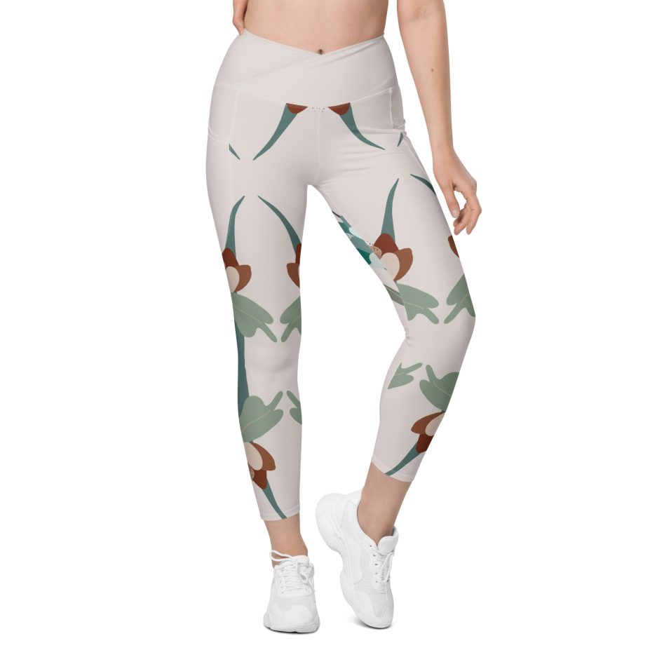 Treat yourself with the trendy and flattering beige colour printed leggings with pockets. Feel exceptional comfort all through your training and keep your valuables close with the practical side pockets.