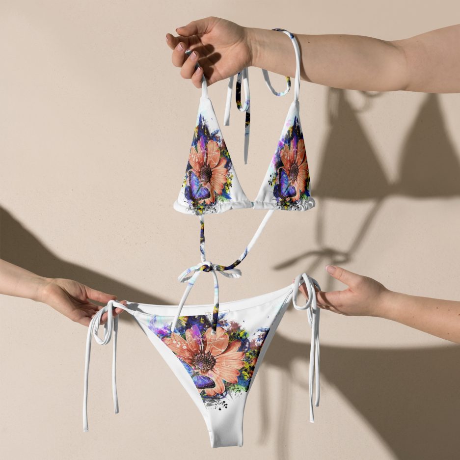 Stay comfortable and stylish all summer with this flower print String Bikini set. It’s made from soft polyester with double-layering and UPF 50+. Style the straps how you like, and get ready to swim!