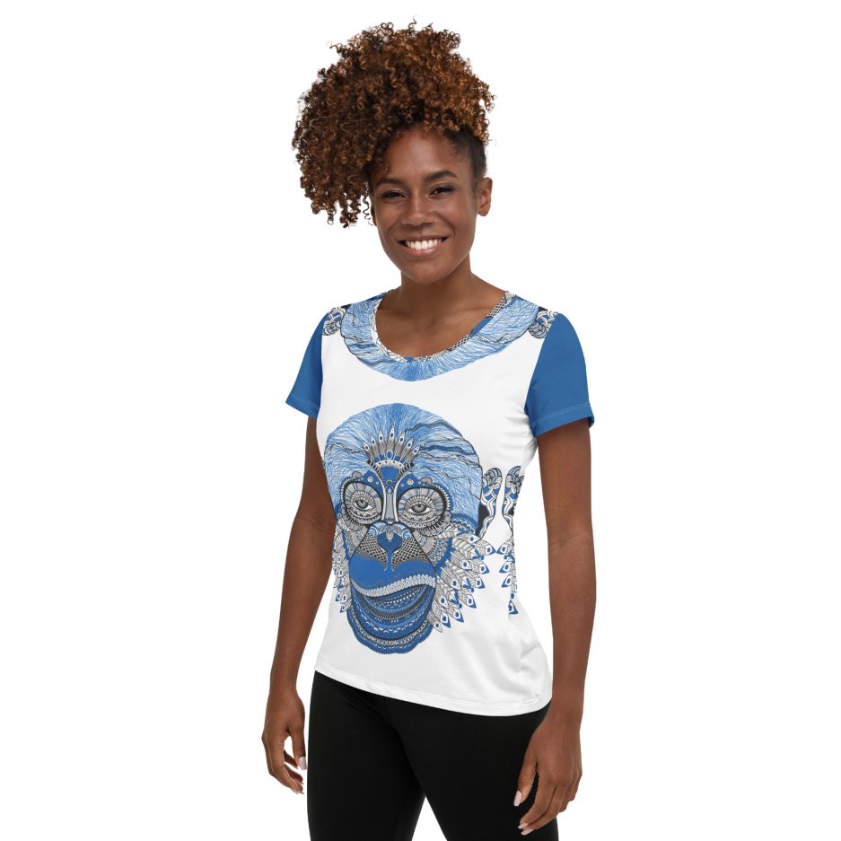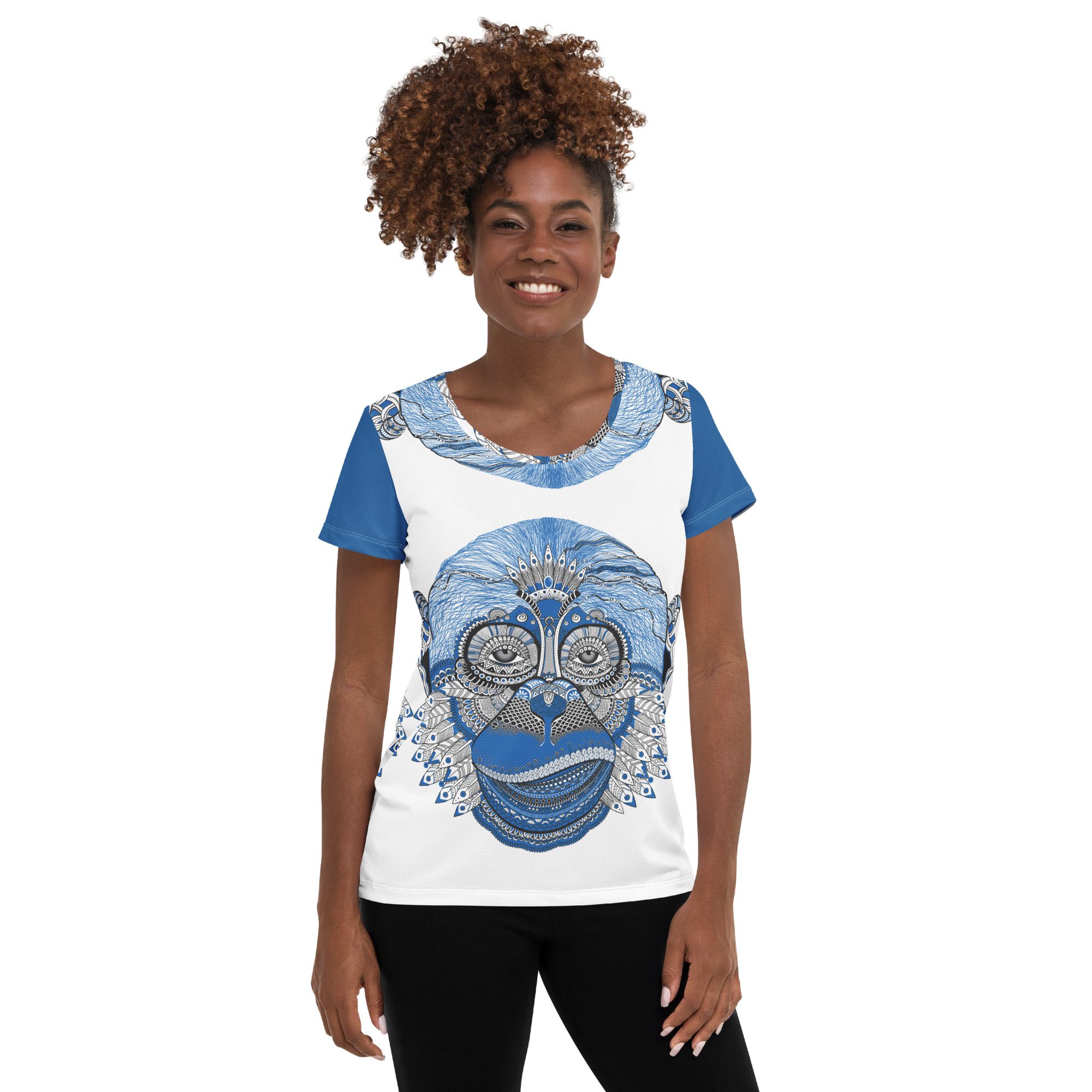 This monkey print t-shirt easily combines comfort and style—the sports mesh fabric with moisture management is sure to keep any athlete dry and comfortable during exercise, while the design will make it into a unique statement piece.